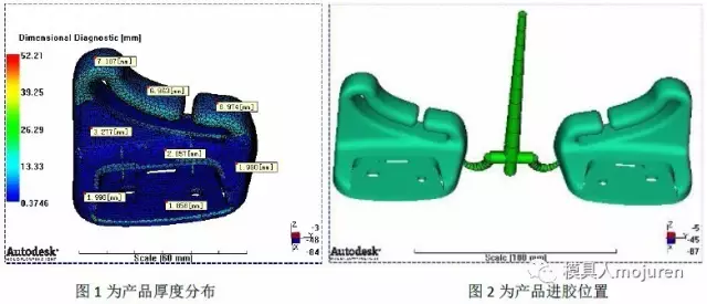 此产品为汽车安全带固定件: 产品最大外形尺寸:70*45*63,产品平均肉厚:1.8~7.0mm,产品肉厚差异较大,因此采用3D网格分析,如图1所示。材料:ABS+PA6-GF8 Terblend N NG-02 : BASF .此材料已做修正,质量指示器为银级,此材料可信度较高。 开云网页版·官方版在线登入-开云(中国)为一模两件,由于产品量大,因此进胶方式为冷流道隧道浇口进胶,如图2所示。