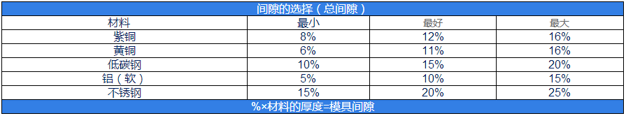 间隙的选择(总间隙)材料最小最好最大紫铜8%12%16%黄铜6%11%16%低碳钢10%15%20%铝(软)5%10%15%不锈钢15%20%25%%×材料的厚度=开云网页版·官方版在线登入-开云(中国)间隙